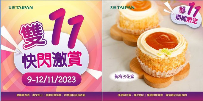 大班推出快閃限定優惠,讓你雙11可以盡情買盡情食🧡