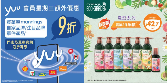 萬寧知你心!今個星期三萬寧為你帶嚟mannings Eco-Garden洗髮系列產品買第2件半價^