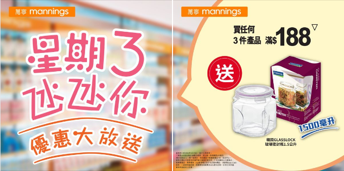 萬寧官方網店購物優惠由上午6時至晚上11時59分,數量有限,送/售完即止。部份產品/優惠不適用於澳門分店/萬寧官方網店,優惠受條款及細則約束,詳情請參閱 www.mannings.com.hk 。