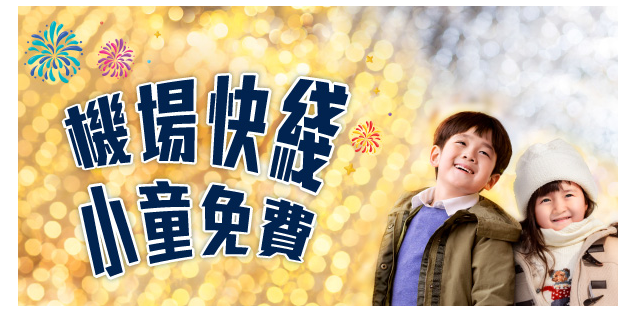 由2023年12月11日至2024年2月18日,3-11歲的小童只需持有效的小童八達通,就可以免費乘搭機場快綫往返市區車站(香港、九龍或青衣站)至機場站;或者從機場快綫市區車站免費前往博覽館站。