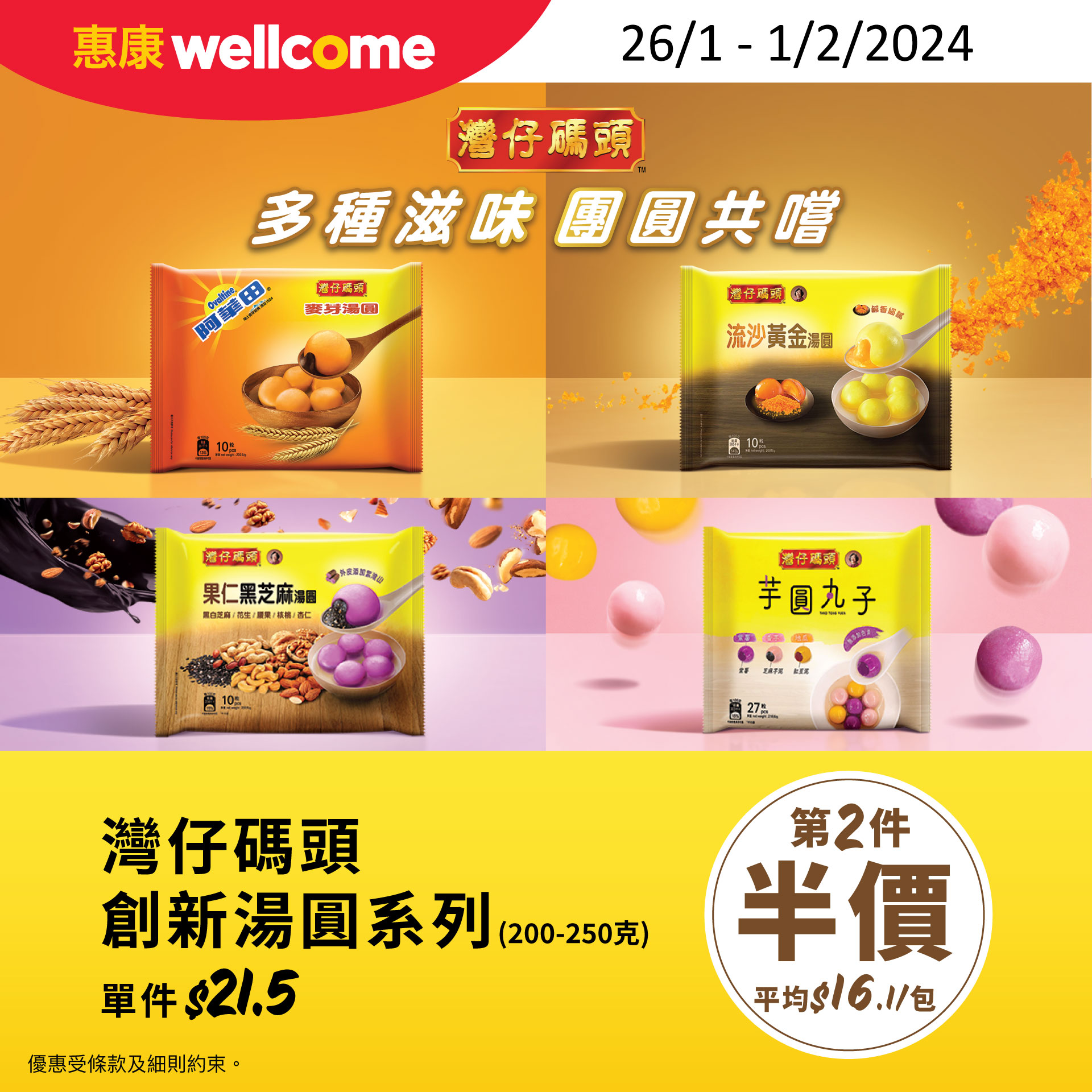 #惠康#Wellcome#灣仔碼頭#湯圓系列#強勢回歸#流沙奶黃湯圓#阿華田麥芽湯圓#芋圓丸子#限時優惠#著數 #著數優惠 #jetso #kongoslo #著數網 #生活優惠 #節日精選