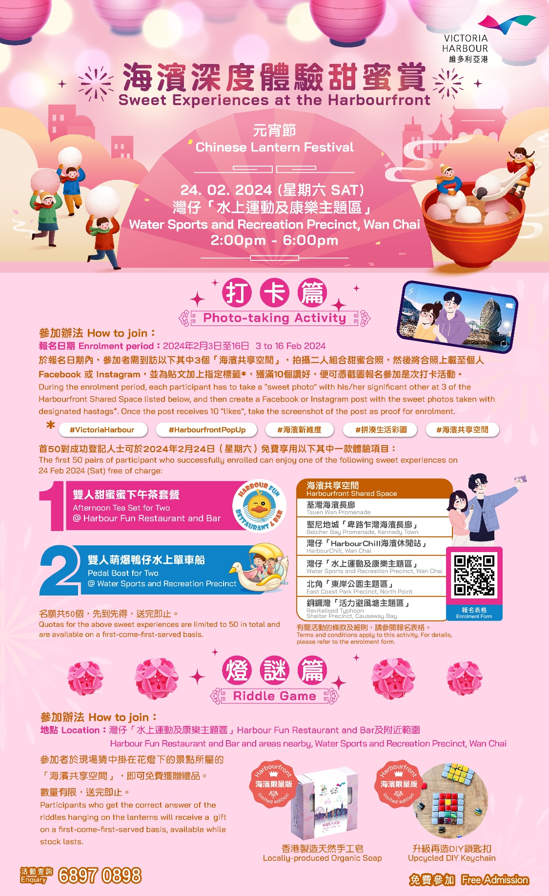 體驗日期和時間:2月24日 (星期六,元宵節) 下午2時至6時