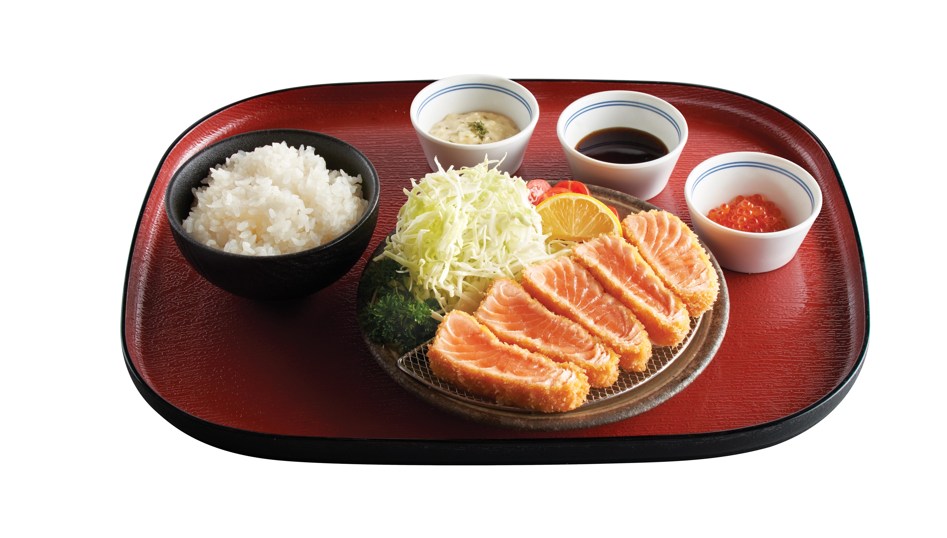 特選厚切三文魚魚柳刺身,「吉列三文魚」即叫即炸,裹粉炸至金黃,外層炸衣鬆脆可口,內裡三文魚依舊保持半生熟,橫切面呈現三文魚原有橙白間條紋路,令人食慾大增!三文魚肉嫩油豐,嫩滑鮮甜,入口香脆與軟綿並存,擠上適量檸檬汁提鮮,亦可蘸上他他醬、南蠻汁提升味道層次,或搭配三文魚籽將鮮味升級。「吉列三文魚」整體口感層次豐富,令人一試難忘,必定能帶給一眾「三文魚控」無限驚喜!惠顧「吉列三文魚」可選配白飯或烏冬,不用飛到日本也同樣可以品嚐令人耳目一新的三文魚滋味!
