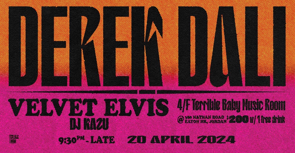 4月20日(星期六)晚上,Terrible Baby 將邀請本地創作歌手 Derek Dali、Velvet Elvis 和 DJ Kazu,為大家帶來一場精彩的音樂之夜。