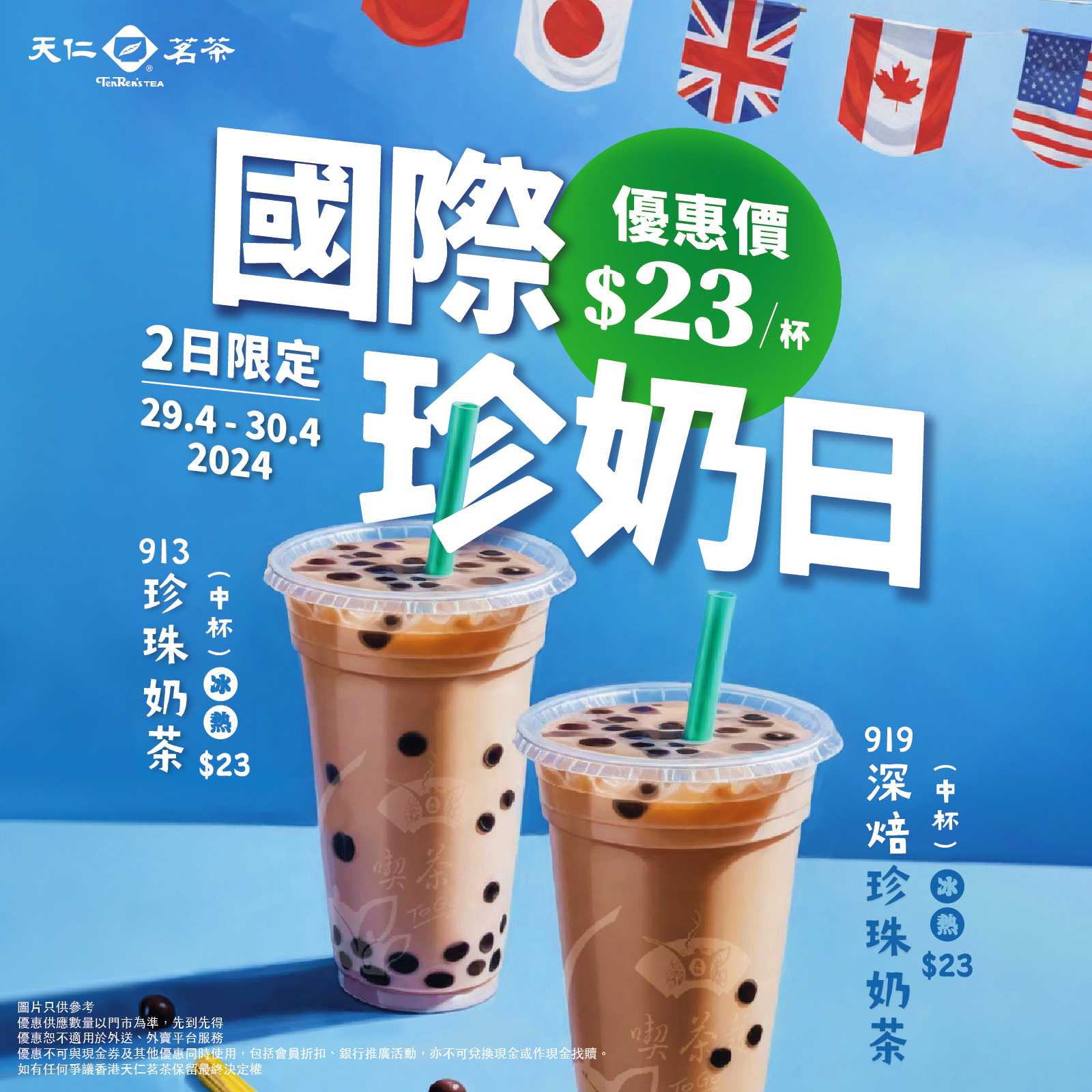 珍奶日」喔~~2024年4月29-30日期間,於香港全線天仁門市可以優惠價$