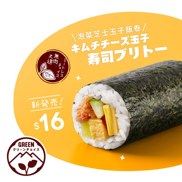 泡菜芝士玉子飯卷選用惹味泡菜,配搭車打芝士、幼嫩玉子、清新青瓜條及日本醃蘿蔔,創新配搭絶對令人回味無窮!