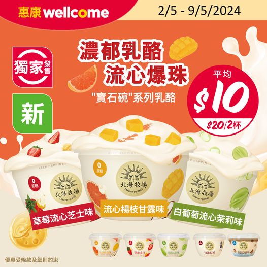 #惠康#Wellcome#爆珠乳酪#北海牧場#優質奶源#創新口感#夏日甜點#楊枝甘露#白葡萄#草莓#咖啡#乳酪