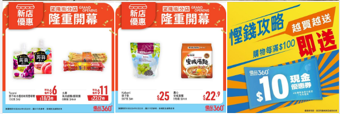 消費消費滿$100即送$10現金優惠券,7日內再買滿$120即可使用,實行邊買邊慳!