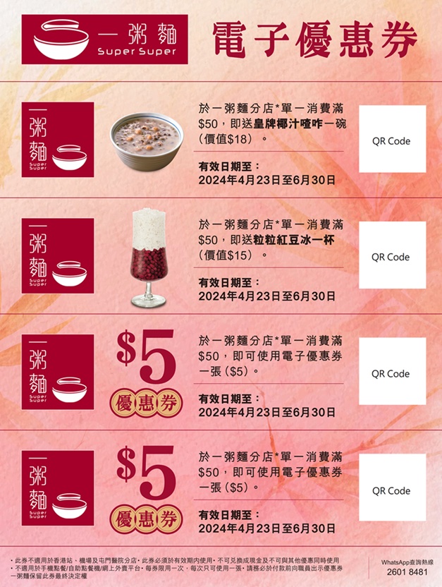 5月14日至6月5日 | 指定一粥麵(小西灣、東涌、機場、香港站及屯門醫院分店除外) |