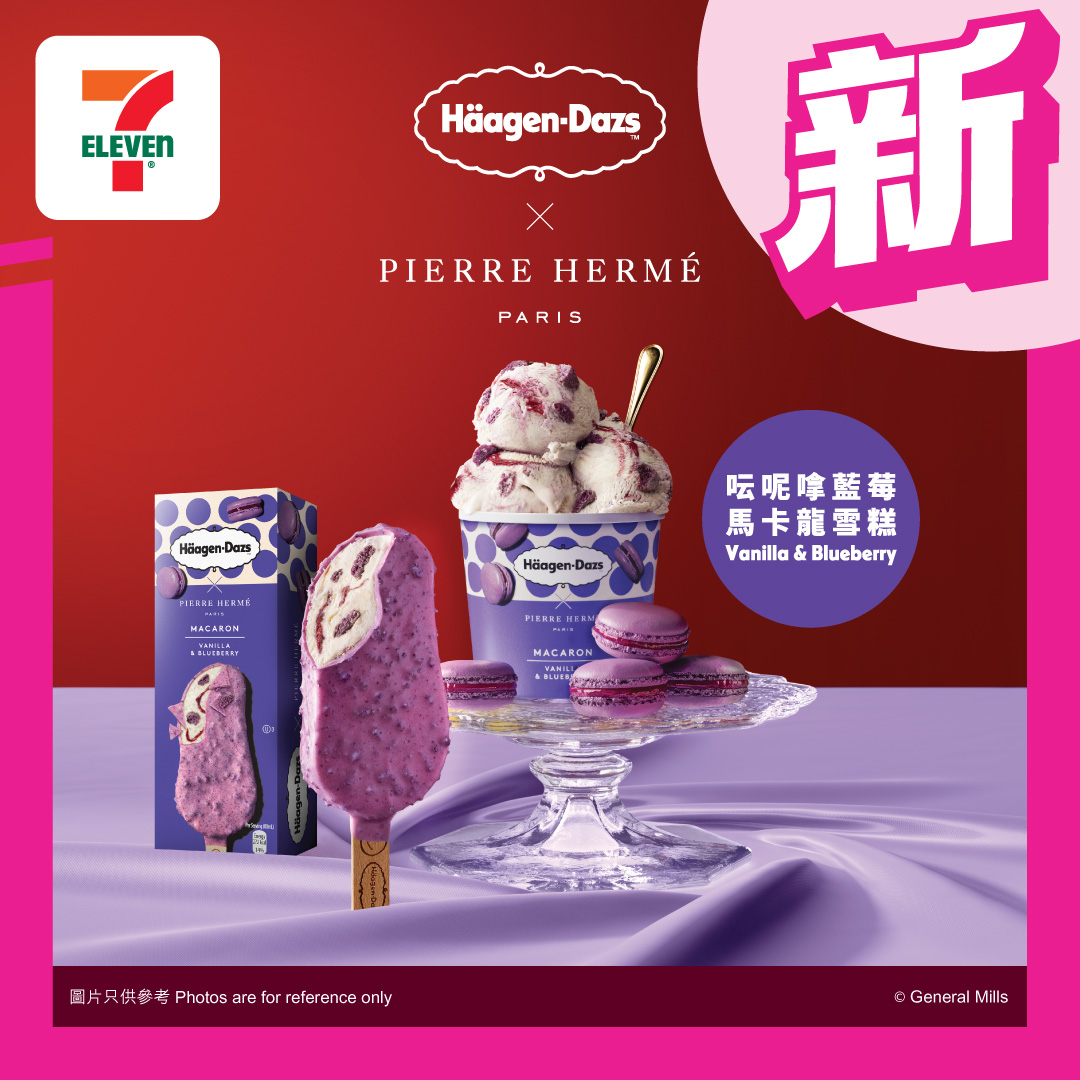 今期7仔雪糕新品推介有#Häagen-Dazs同法國著名馬卡龍品牌#PierreHermé聯乘推出嘅呍呢嗱藍莓馬卡龍雪糕系列