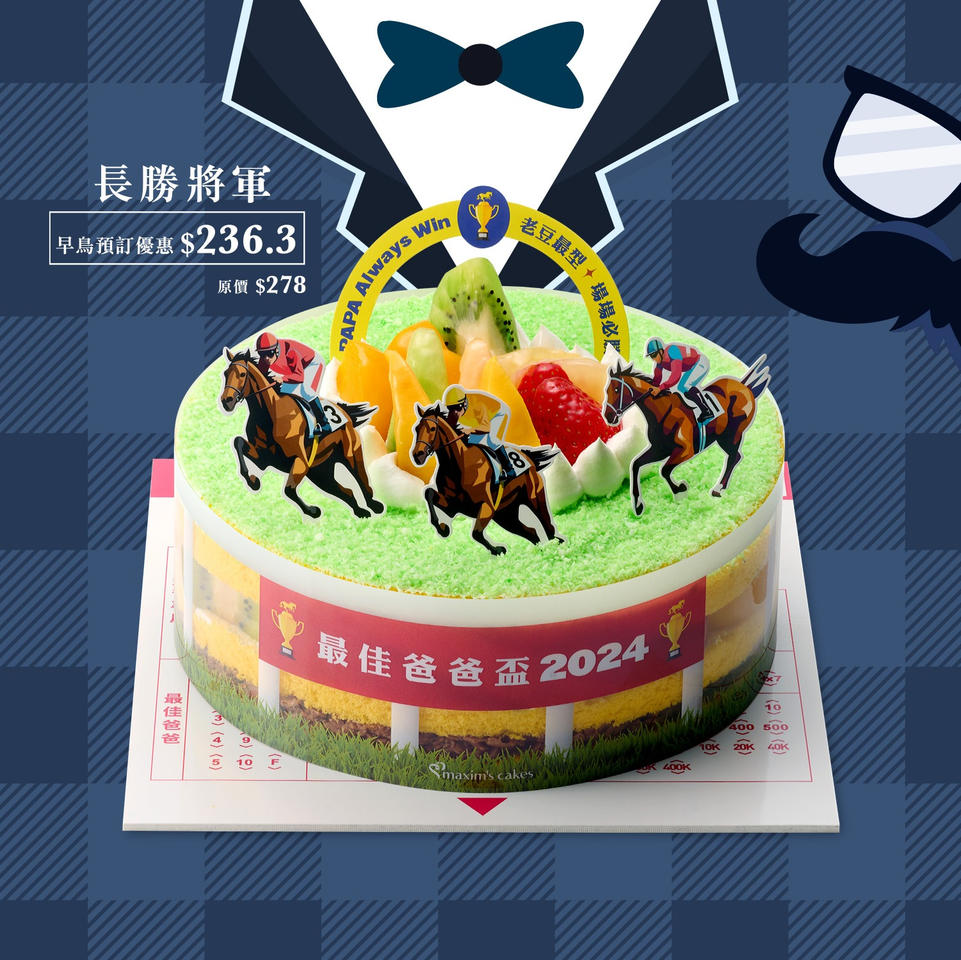 🏆 #長勝將軍 就好似爸爸喺我哋心入面永遠都咁掂✨ 想大家家中嘅「最佳爸爸」送上實際又窩心嘅肯定!賽馬造型蛋糕以招牌雜果忌廉蛋糕為基底,加入美心招牌朱古力脆脆餅底,經典口味一定冇得輸🤩!