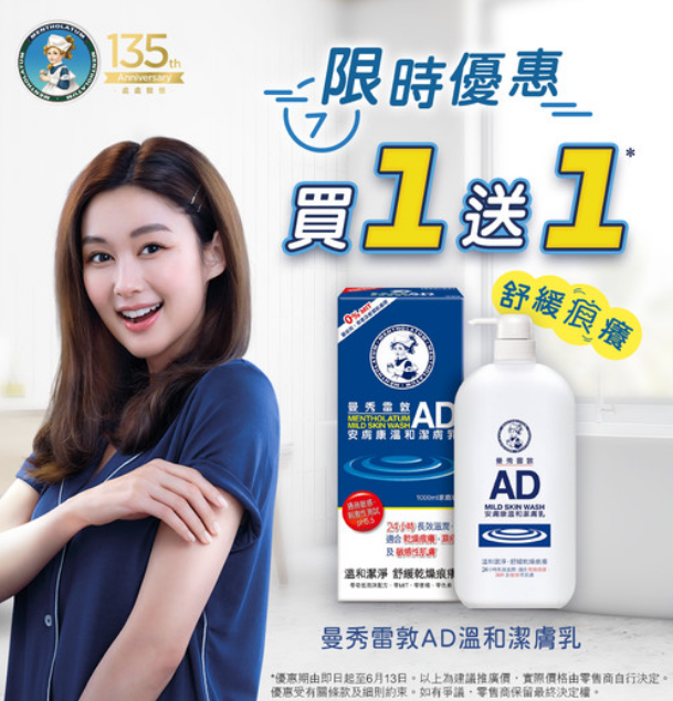 舒緩濕疹乾敏痕癢! 曼秀雷敦 AD溫和潔膚乳 #買1送1*