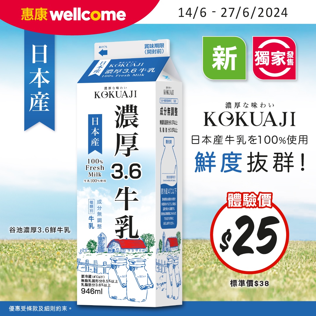 #惠康 #Wellcome #KOKUAJI #日本鮮奶 #日本直送 #無乳倫比 #鮮味迫人 #嘗鮮體驗 #初登場 #獨家發售