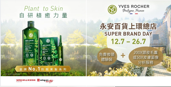 由2024年7月12日至7月26日,永安會員會員憑永安會員App內的推廣訊息親臨上環總店YVES ROCHER專櫃,即可尊享以下獨家購物優惠。