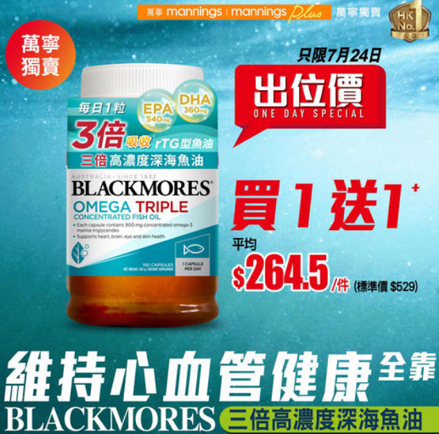 【#BLACKMORES三倍高濃度深海魚油】每日1⃣粒 輕鬆維持心血管健康❤️