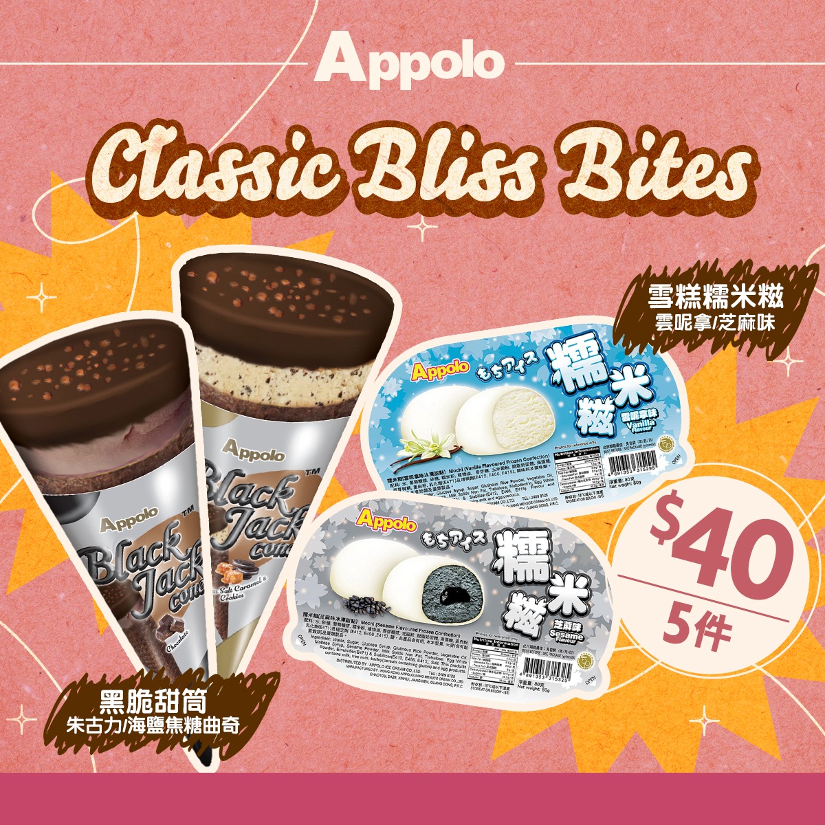 【經典雪糕 美食之旅開催中】阿波羅雪糕嘅經典產品真係多到十隻手指都數唔晒!今個星期,不如大家先嚟試吓有朱古力味或海鹽焦糖曲奇味嘅黑脆甜筒 同埋雪糕糯米糍!而家仲有夏日推廣價,黑脆甜筒同雪糕糯米糍,口味任你揀,買夠5件都只係$40!優惠至8月18日,一個價錢兩種享受,美食假期就由今日開始。*優惠不適用於尖沙咀、旺角、將軍澳連理街、紅磡及部份分店。詳情需以店內宣傳品所示之資料為準。#Appolo #阿波羅雪糕 #雪糕 #雪條 #優惠 #黑脆甜筒 #朱古力甜筒 #海鹽曲奇甜筒 #雲呢拿味 #芝麻味 #雪糕糯米糍