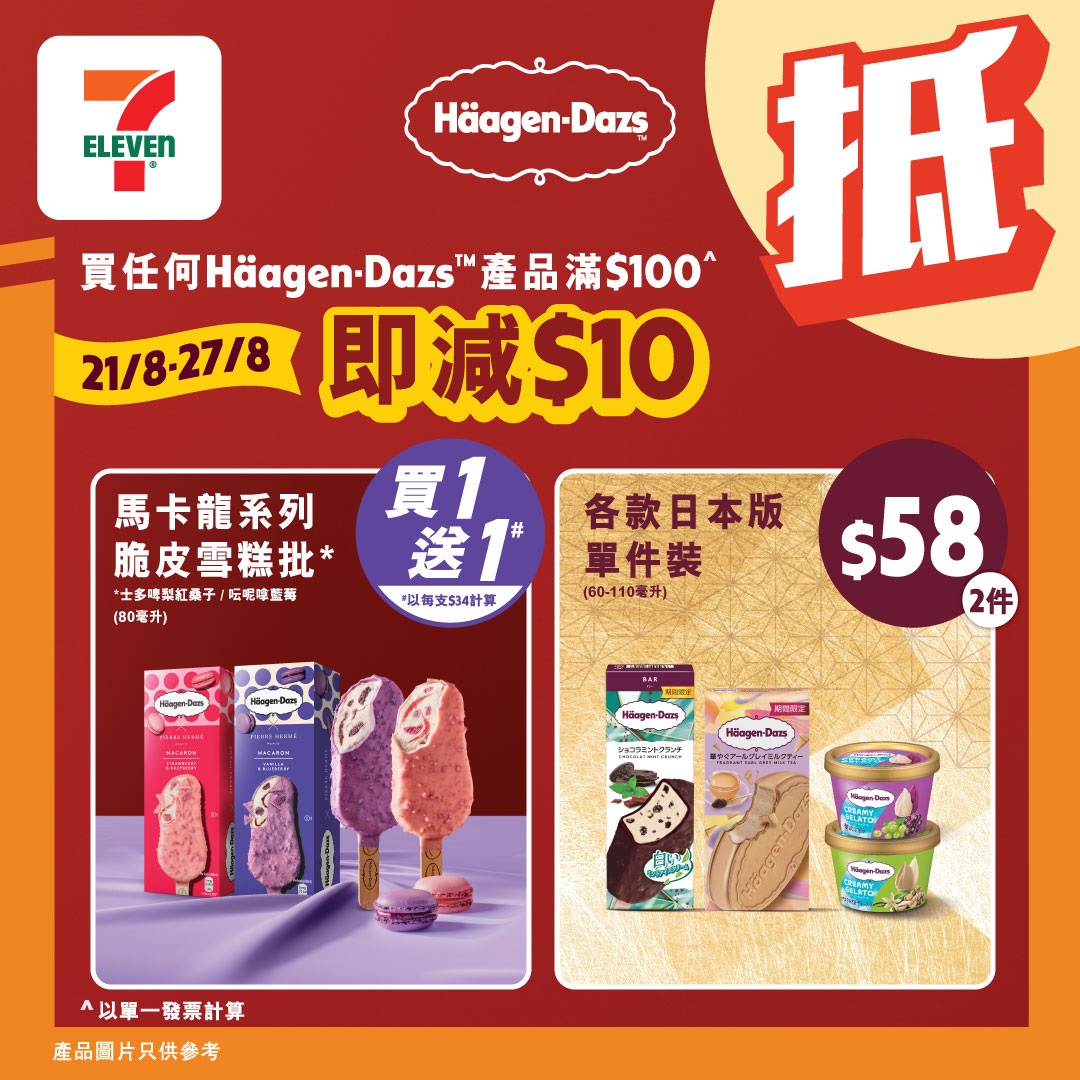 #7ElevenHK #7Eleven便利店 #著數優惠 #jetso #只限7天 #雪糕優惠 #快啲嚟7仔啦 #HäagenDazs #滿100蚊即減10蚊 #馬卡龍系列脆皮雪糕批 #日本版