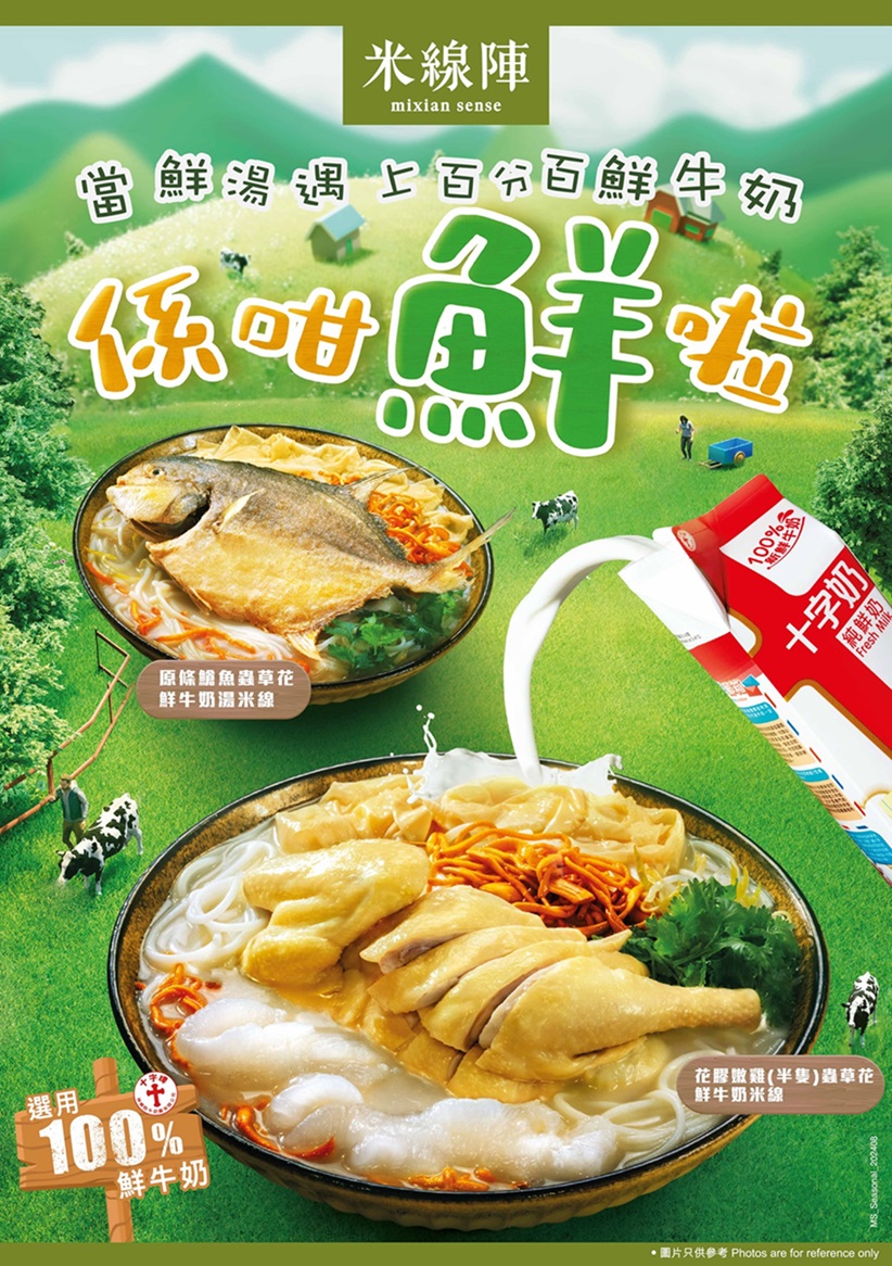 「鮮」,是米線陣的極致追求,為此一直以創新理念研製獨一無二的靈魂湯底,刷新食客的滋味享受。作爲紮根本土的米線品牌,今次米線陣特別與同樣在本地家傳戶曉的十字牌合作,由即日起破天荒聯乘推出期間限定的「米線陣 x 十字牌鮮牛奶湯米線系列」,以100%新「鮮」牛奶及「鮮」味湯底為主打,再以「鮮」味食材入饌,本地品牌至「鮮」Power Triple Up,全新打造2大口味合共4款全新米線產品,當中包括2款營養價值爆燈、「只想你身體健康」的「蟲草花 x 鮮牛奶湯米線」,以及2款適合重口味食客的Perfect Match「麻辣鴨血 x 鮮牛奶湯米線」,4款新品均主打可以盡飲的100%鮮牛奶湯底,以及原條䱽魚、花膠及嫩雞等激罕鮮味食材,全方位喚醒愛新「鮮」、愛「鮮」味的港人味蕾;加上2款全新的鮮牛奶乳酪甜品、3款首度面世的鮮牛奶特飲及全新小食配餸,為貪新鮮的你開啟嚐「鮮」大門!