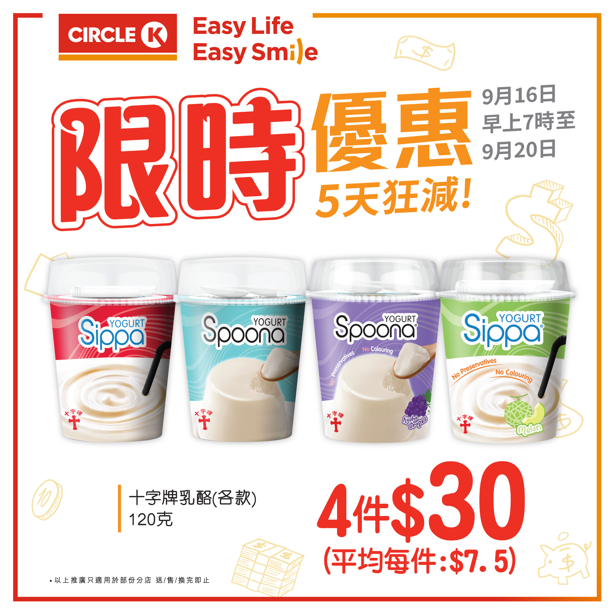 【5天狂減】十字牌乳酪十字牌Sippa純•乳酪同Spoona純•凝酪以鮮牛奶製造,乳酪中嘅益生菌仲有助腸道健康!健康又好味5天限時優惠即刻嚟Circle K入貨啦十字牌乳酪 -$30/4件【平均每件都係$7.5咋!!!】- 推廣日期: 2024年9月16日早上7時至2024年9月20日- 優惠須受條款及細則約束,詳情請參閱店內海報#OK便利店 #CircleK #5天優惠 #十字牌