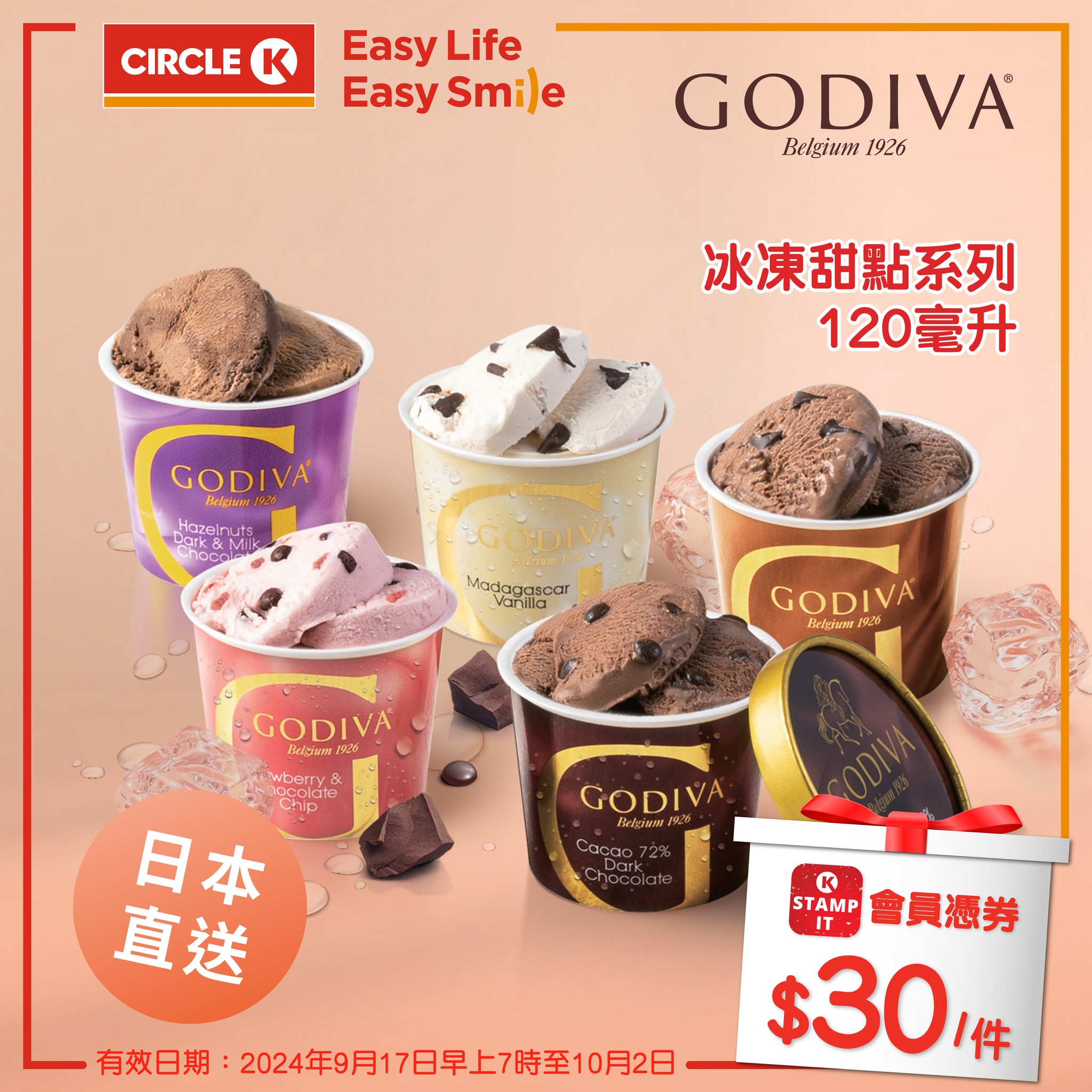 #會員優惠#日本直送#Godiva杯裝冰凍甜點 推出限時會員優惠,即日起(/9月17日)至10月2日,OK Stamp IT會員憑券可以優惠價$30購買!
