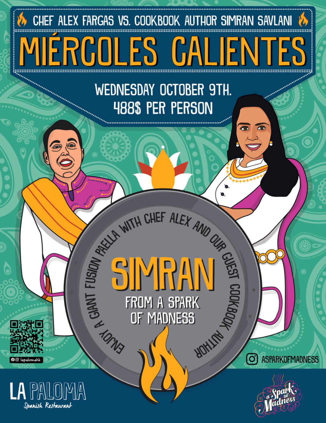 在這個獨特的晚上,Simran將與La Paloma的主廚Alex Fargas共同打造一個包含八道菜的精彩菜單,將西班牙料理的傳統與現代素食創意完美結合。菜單中的亮點包括:搭配SPARK瘋狂蜜糖及橄欖的傳統西班牙小食——烤麵包配香蒜番茄;加入SPARK焦糖青蔥的西班牙凍湯;紅菜頭小食配以西班牙芝士及SPARK香脆辣椒油;素食版本的蒜香辣椒煮素蝦和以枝豆、豆腐及SPARK果仁酸辣醬入饌的香炒西班牙飯。甜品將有SPARK花椒朱古力心太軟,配以花生醬雪糕,完美整個用餐體驗。