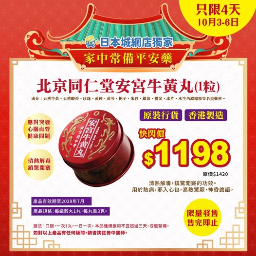 網店限時快閃⏰原裝行貨✅北京同仁堂安宮牛黃丸