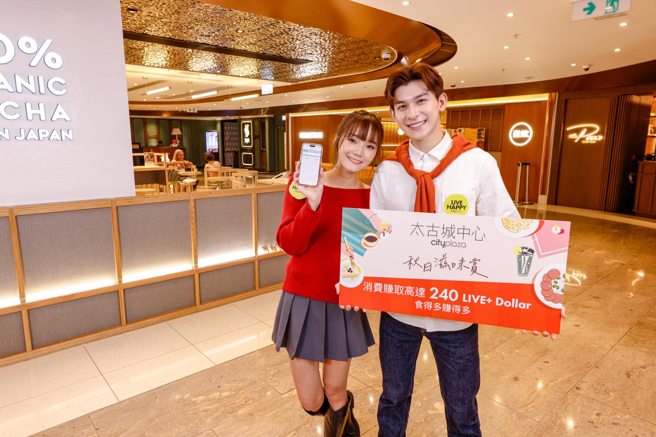 太古城中心「秋日滋味賞」於 10 月 14 日至 11 月 10 日期間舉行,只要登記成為LIVE+會員,於推廣期間到太古城中心、太古城及太古坊指定餐飲商戶以單一電子貨幣消費滿指定金額,即可獲指定LIVE+積分,可以換領禮品或當作LIVE+ Dollar使用,每一LIVE+