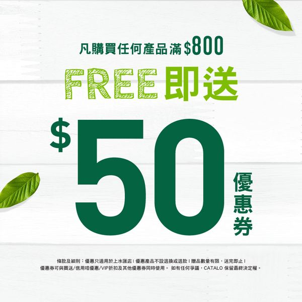 凡購買任何產品滿 $800 即送 1 張 $50 優惠券*
