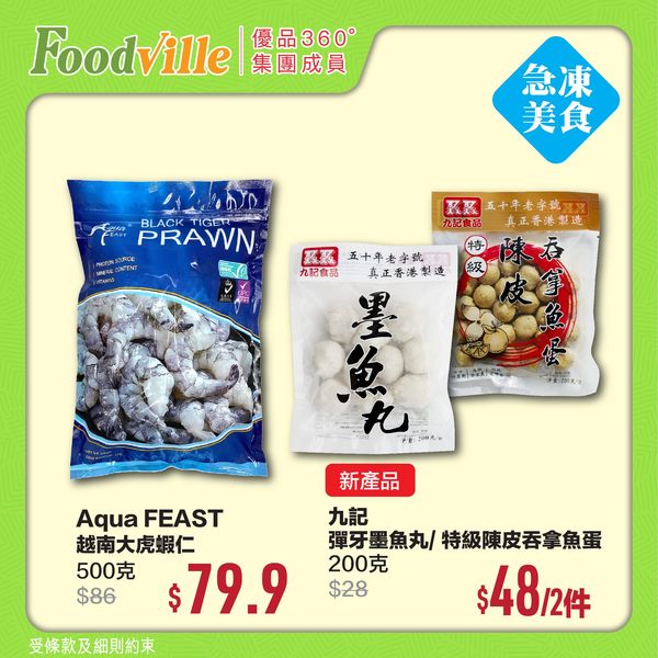 】其他地方未必得,FoodVille 就一定得!事關我哋嘅凍櫃成日有新貨返,成日都畀到你新鮮感各位。今期新返咗九記嘅彈牙墨魚丸同陳皮吞拿魚蛋,聽個名都勁有新鮮感,好想買啲返去試吓哩!其實我哋仲有其他海鮮同肉類畀大家揀,大家𥄫實就一定有驚喜!