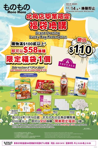 新開幕期間更有各種開幕優惠包括:「ものものMono Mono北角店開業限定福袋」、「北角店開業迎新賞」。大家萬勿錯過!