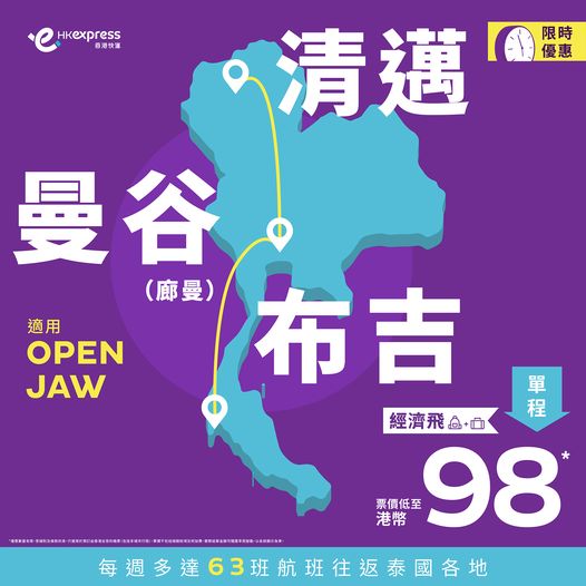 HK Expres【限時優惠倒數進行中 泰國平機票等緊你!】