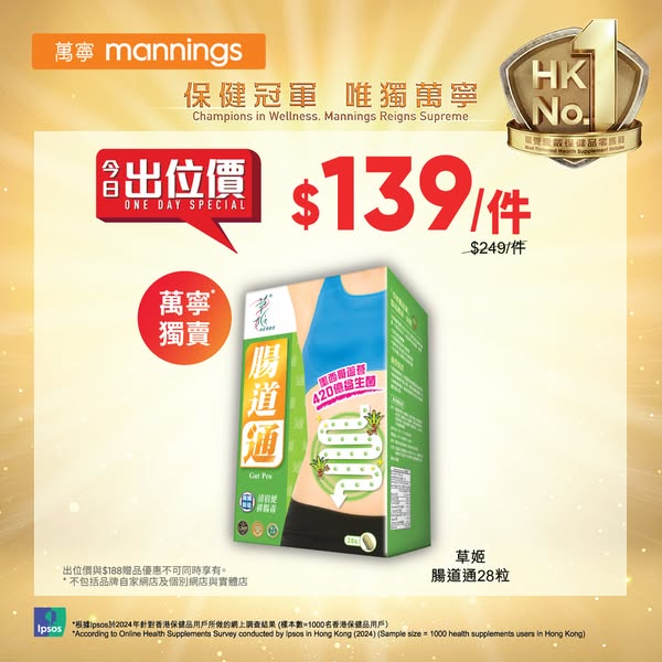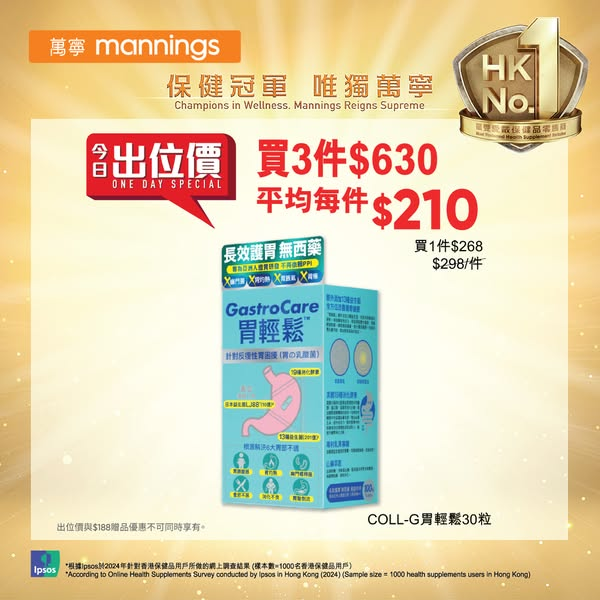 ! ~部份產品不適用於萬寧官方網店,詳情請參閱 www.mannings.com.hk