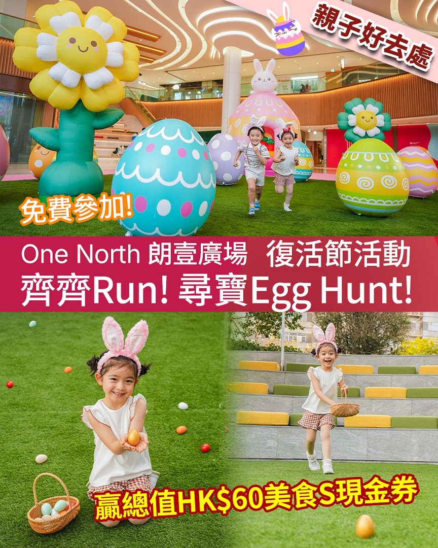𝗢𝗻𝗲 𝗡𝗼𝗿𝘁𝗵朗壹廣場免費尋復活蛋 送HK$60美食S現金券】