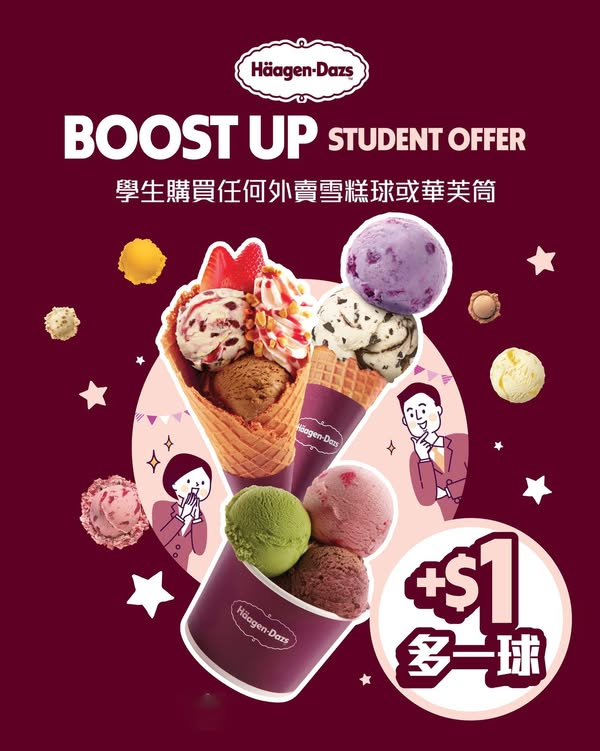 【考試季來襲!Häagen-Dazs™特設 「#溫書加油站」】各位同學仔成日對住厚厚嘅課本,係咪讀到頭都大埋?Häagen-Dazs™ 話要做大家喺溫書路上嘅最強後盾!#學生福利時間 即日起至4月14日,學生們去到apm Häagen-Dazs™購買任何雪糕球或Waffle Cone,加多$1蚊就可以多一球雪糕 食啲甜嘢,聽講測驗考試會順利啲㗎~一於放學約埋啲friend去食雪糕解解壓,一齊互相加油打氣啦! Häagen-Dazs™ | Shop L1-7