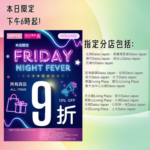 【指定20間分店所有貨品9折