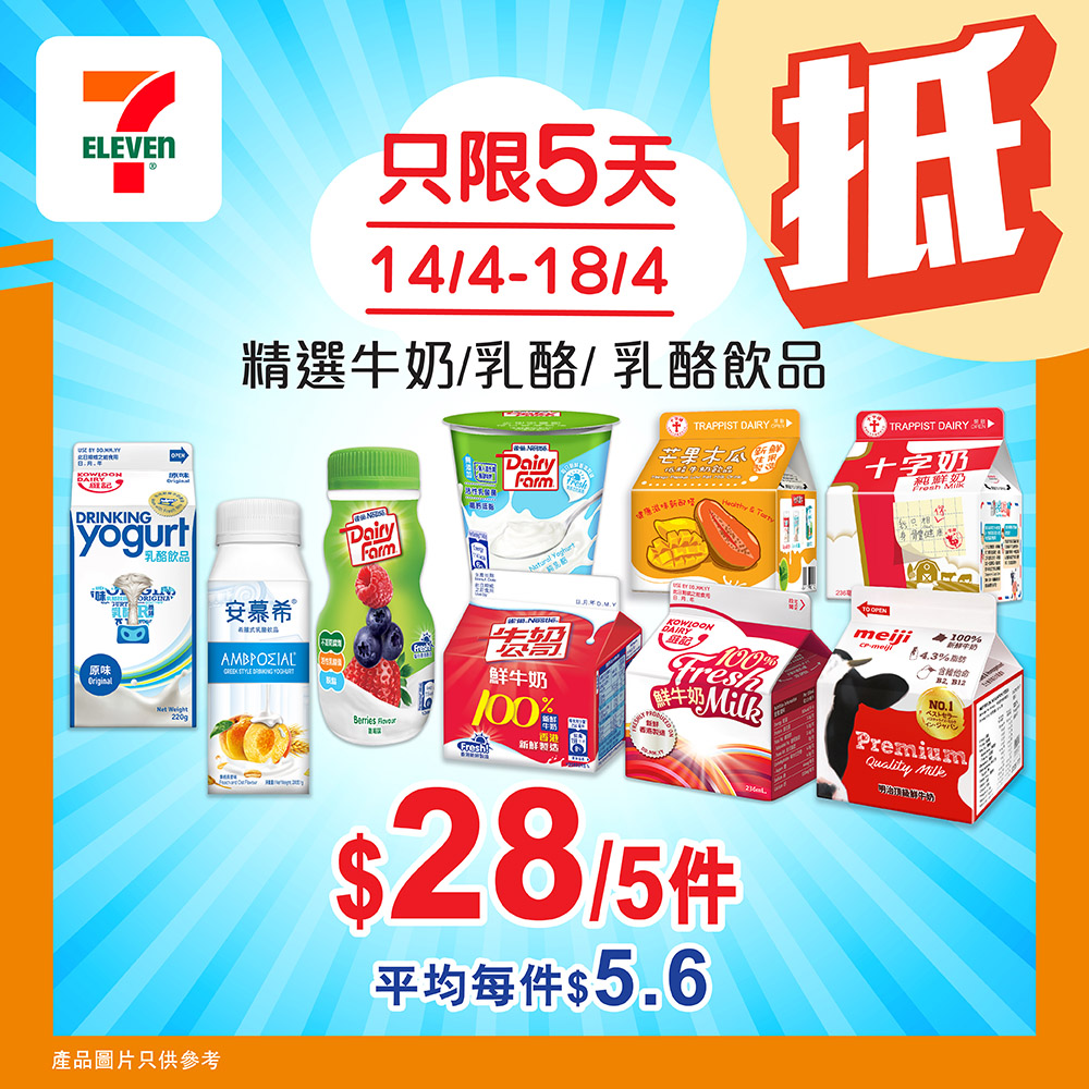 !7仔為你帶黎5日限時優惠,由即日起至4月18日嚟7仔,購買精選牛奶/乳酪/ 乳酪飲品