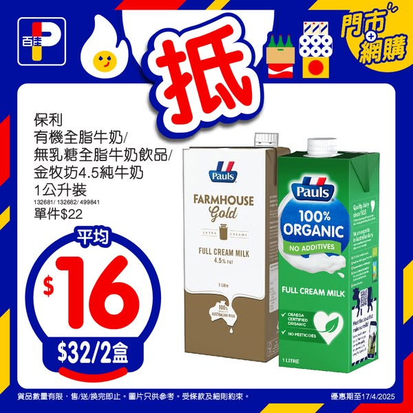 *優惠期至 17/4/2025。以上優惠適用於大部分香港百佳、FUSION、TASTE、INTERNATIONAL及PNS網購有售,並不適用於百佳旗下的其他超市品牌、數碼港商場3樓及新鮮食品優惠並不適用於TASTE x FRESH 新鮮生活之店舖。貨品數量有限,售/送/換完即止。圖片只供參考。 以每張發票計算,受條款及細則約束。#只限同價及同系列,贈品/換購品除外。