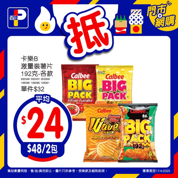 卡樂B激量裝薯片192克 - 各款 $48/2包 (平均$24/包)*