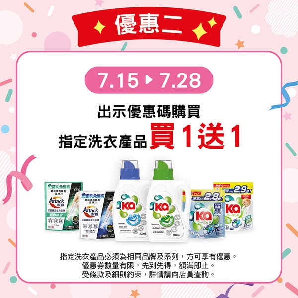 【#UNY x 香港開心購物節2025 優惠第2彈!憑優惠碼享指定洗衣產品買1送1】香港開心購物節優惠第2彈現正開始!即日起至7月28日,透過指定手機應用程式(Alipay HK及支付宝 / AR Lens / 香港01)領取優惠碼並於UNY購買指定洗衣產品,即可享買一送一!優惠碼數量有限,先到先得,額滿即止,立即開app搶code!按此了解活動詳情:http://bit.ly/3T8ZKzT—一APP盡享會員儲分、獎賞兌換及網購體驗, 立即下載CU APP:https://bmai.cc/4p7cku