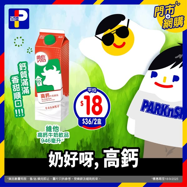 維他高鈣牛奶飲品 946毫升 $36/2盒 ; 平均 $18/盒高鈣配方幫你強健骨骼,大人同小朋友都啱飲!