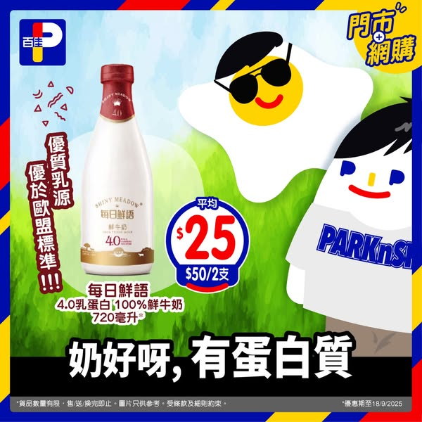 *優惠期至 18/9/2025。優惠適用於大部分香港百佳、FUSION、TASTE、INTERNATIONAL及PNS網購有售,並不適用於百佳旗下的其他超市品牌、數碼港商場3樓。貨品數量有限,售/送/換完即止。圖片只供參考。以每張發票計算,受條款及細則約束。