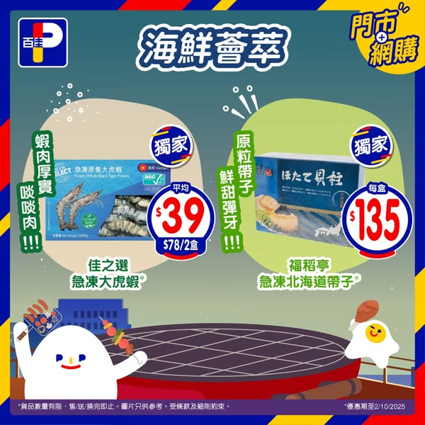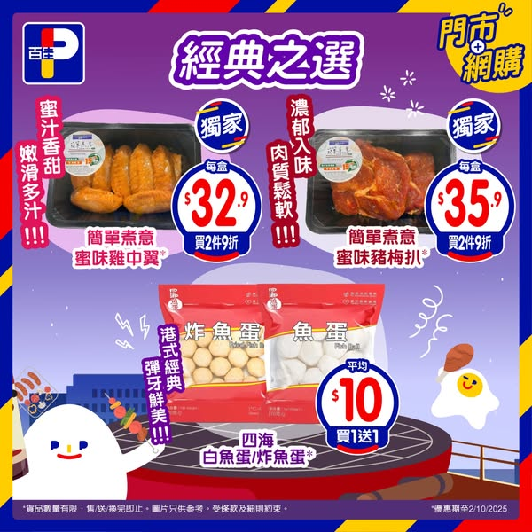 *優惠期至 2/10/2025。 優惠適用於大部分香港百佳、FUSION、TASTE、INTERNATIONAL及PNS網購有售,並不適用於百佳旗下的其他超市品牌、數碼港商場3樓及新鮮食品優惠並不適用於TASTE x FRESH 新鮮生活之店舖。貨品數量有限,售/送/換完即止。圖片只供參考。以每張發票計算,受條款及細則約束。 ※ 急凍/冷凍食品/贈品/換購品/套裝除外。