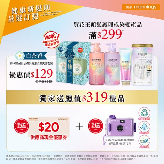 ^每發票計,須購買指定數量方可享贈品優惠。數量有限,不包括出位價、試用裝及換購價產品。售/送完即止。優惠受條款及細則約束,優惠只適用於9月19至10月2日。最終價格以萬寧決定為準。如有爭議,萬寧保留最終之決定權。