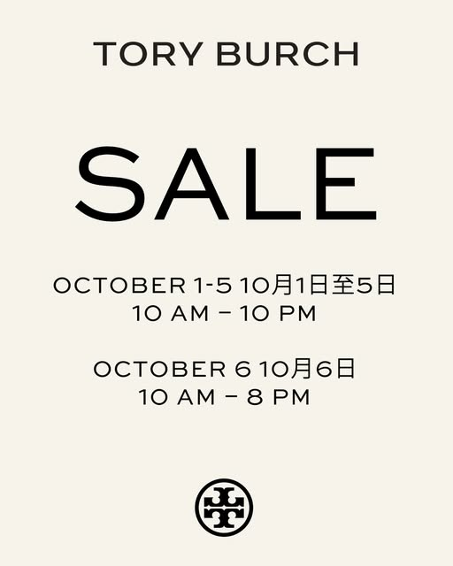 【崇光銅鑼灣店限定|TORY BURCH SALE 】1/10 至 6/10/2025 期間,TORY BURCH SALE 將強勢登陸崇光銅鑼灣店 21/F 崇光宴會廳!品牌以摩登優雅兼美式時尚風格見稱,手袋、小皮具、服飾同鞋款通通都係女士們必搶嘅心水之選~ 無論係返工日常定假日出遊,都可以大派用場!今次嘅精選貨品仲有超值優惠!快啲把握機會入手人氣經典手袋、時尚服飾同鞋履,搶購屬於你嘅潮流單品!地點:崇光銅鑼灣店 21/F 崇光宴會廳營業時間:1/10 - 5/10/2025 - 10am-10pm6/10/2025 - 10am-8pm