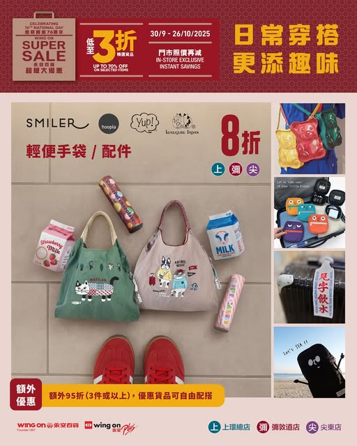 永安百貨 讓日常穿搭更添趣味! #超級大優惠詳情請參閱: https://c01.co/1dyif大量貨品於永安網店 https://shop.wingon.hk 同步發售-----------------------------------------永安百貨官方網頁及永安網店:https://shop.wingon.hk/