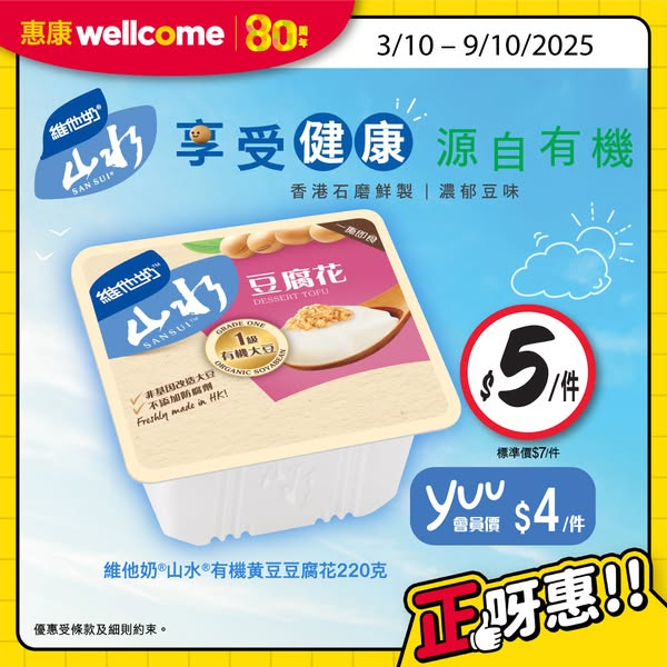 部分優惠適用於惠康網店/Market Place網店/yuu網購。以單一發票及折實價計算。貨品數量有限,售完即止 。部分貨品只限指定分店提供。優惠受條款及細則約束。貨品圖片只供參考。