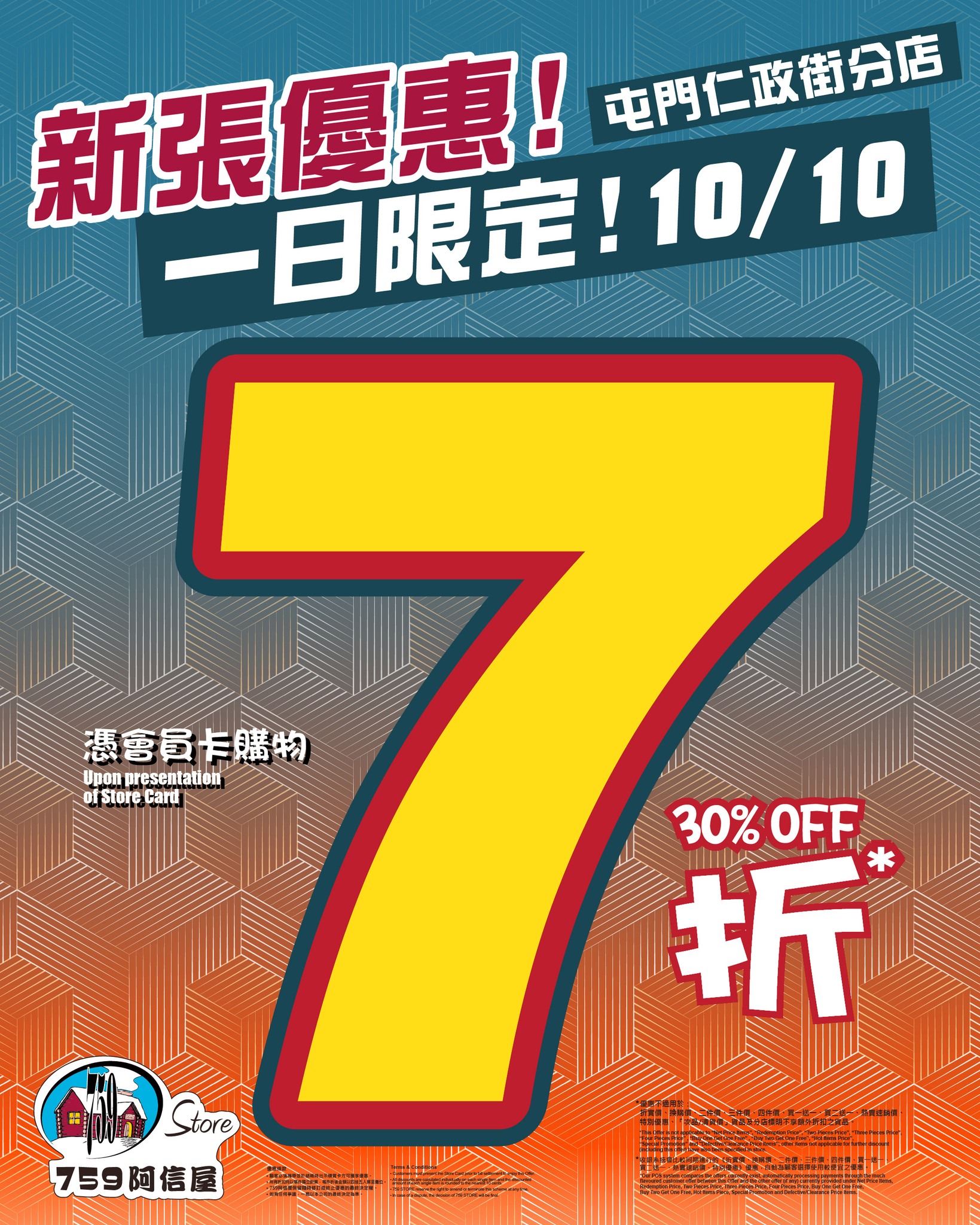 *優惠不適用於:折實價、換購價、二件價、三件價、四件價、買一送一、買二送一、熱賣速銷價、特別優惠、「次品/清貨價」貨品及分店標明不享額外折扣之貨品。