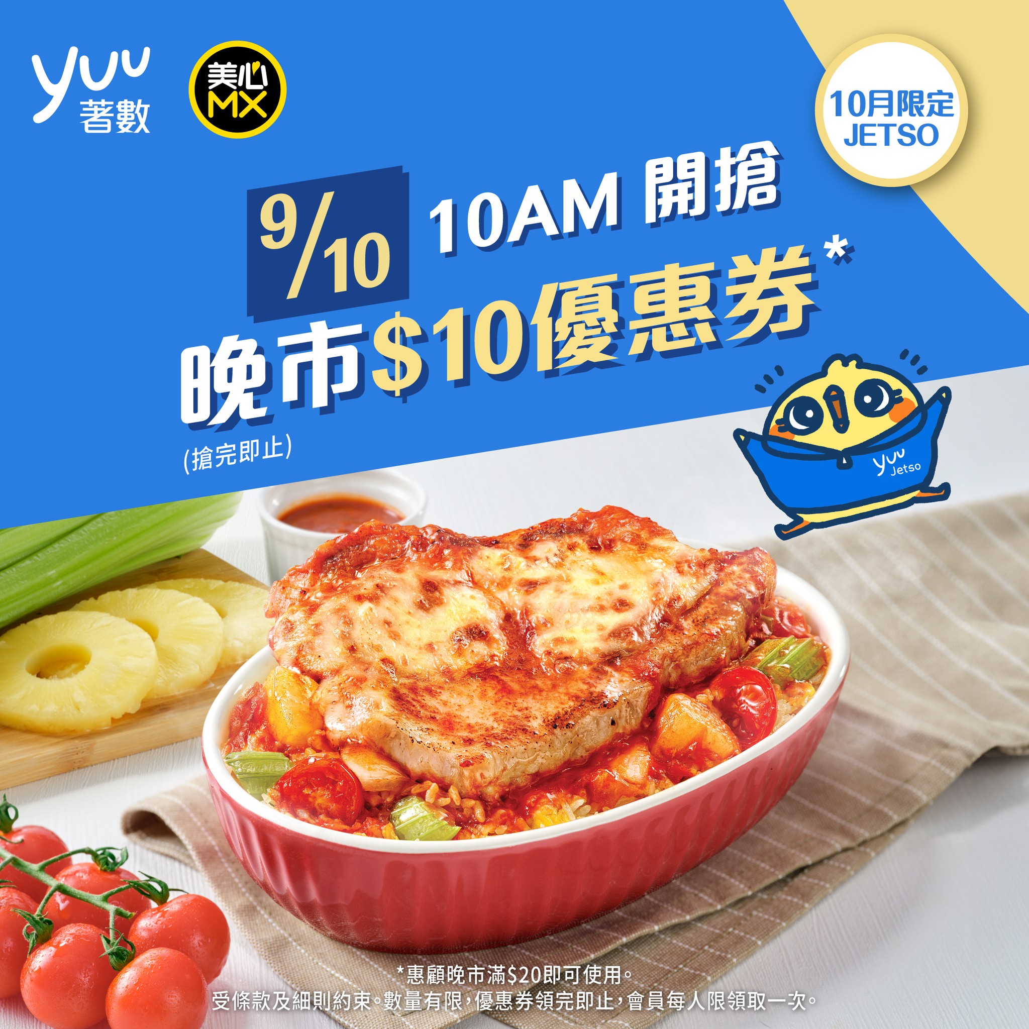 準備好聽朝(10月9日)10點開yuu App搶美心MX晚市$10優惠券*!