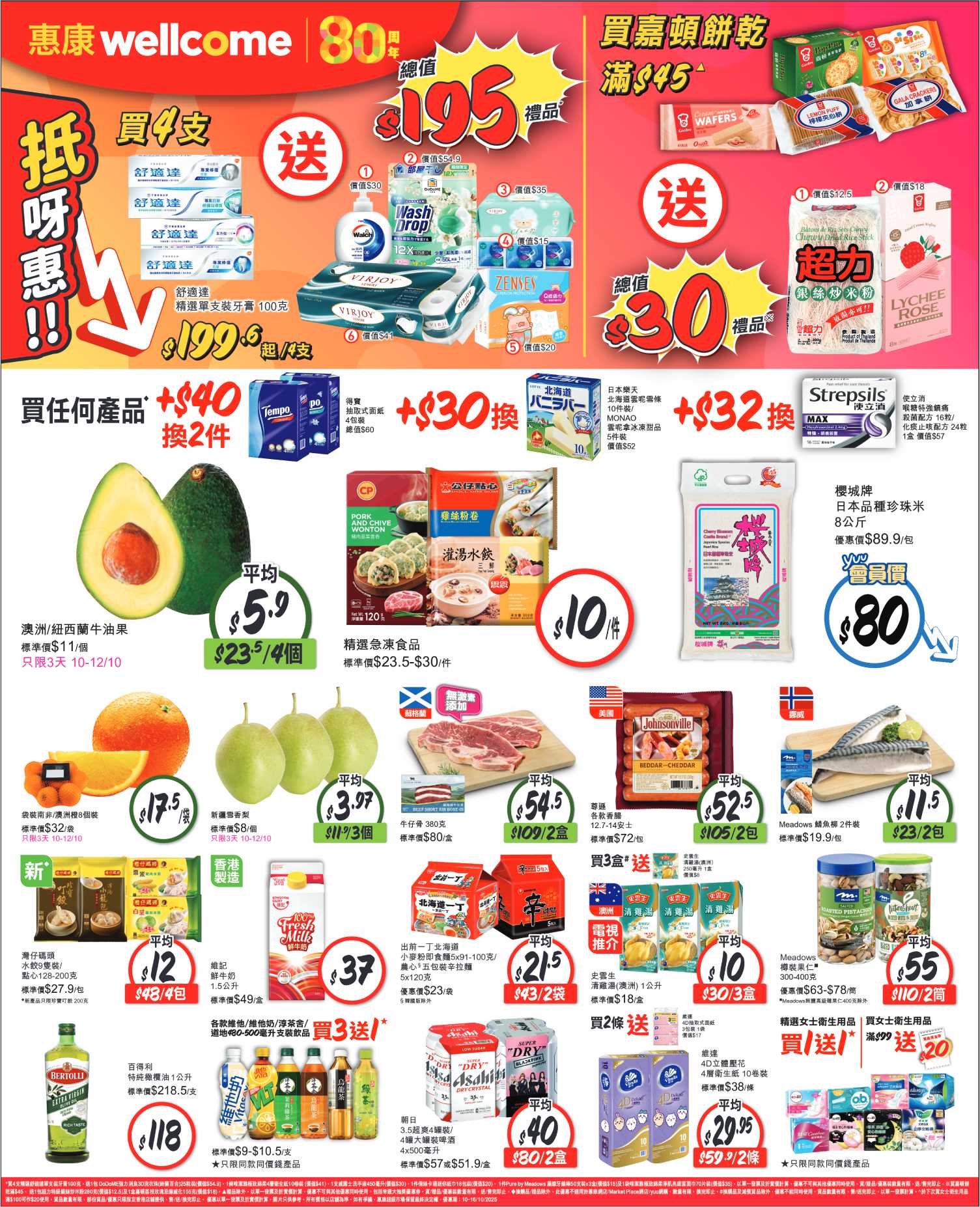 以單一發票及折實價計算。部分優惠不適用於惠康網店/Market Place網店/yuu網購。貨品數量有限,售/送完即止。部分貨品只限指定分店提供。優惠受條款及細則約束。貨品圖片只供參考。