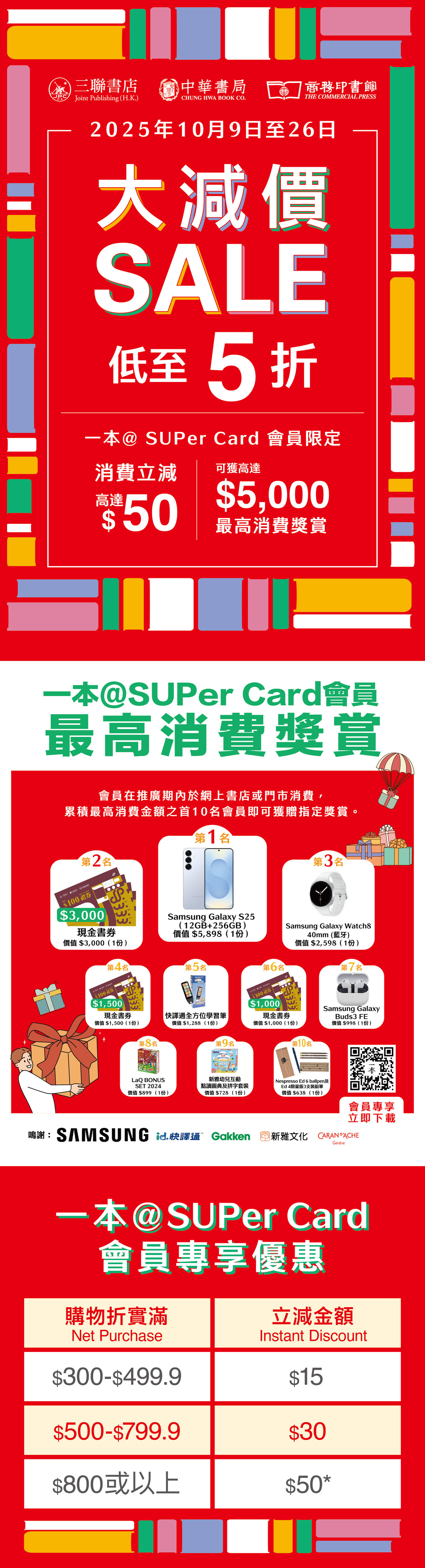 無論您想入手新書、添置文具,還是挑選精美小物,千萬別錯過由即日起至10月26日期間,於三聯書店、中華書局及商務印書館門市及線上「一本」文化閱讀購物平台舉行的「秋季大減價」!全店圖書及生活好物低至5折限量發售,